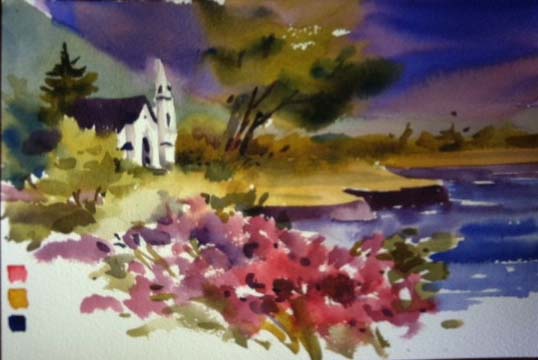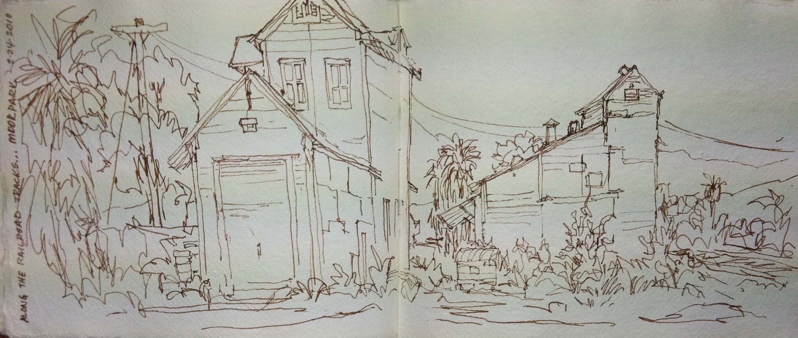 A trip to the northeast part of North Carolina in 2009 was a plunge into the world of green. This scene was an accidental find when we were on our way to find an historical Episcopal Church. We promptly settled down to get a sketch and were happy we lost our way.