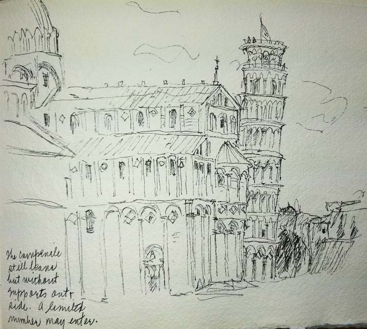 Most of my journals are done on trips with fellow artists or family. In this case it was a group from college in 2007 and I was one of eleven and the only artist. One of the group had a friend who did tours in Charleston so while he gave us history (the written part of this page), I drew the live oak tree which fascinated me. You have to be on the lookout for ways to keep your journal if you are with others who do not share your passion.