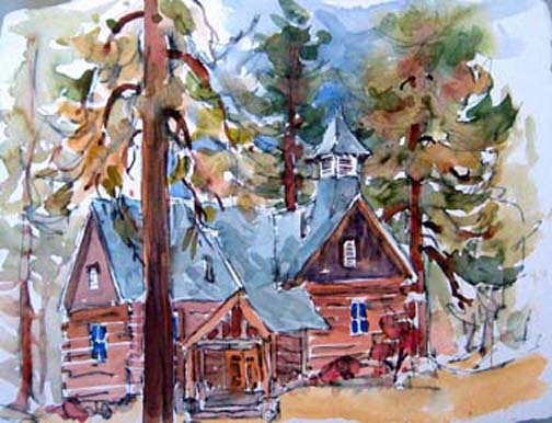 Shortly after I opened the gallery in 1998, I found I needed to take a break and go “paint-about.” I was planning on visiting my sister in Central California and needed a goal so I would use my time away carefully. Since we have now 4 generations of teachers in my family I decided to do early schoolhouses. My grandfather was a headmaster of schools in Maine before moving to California, my three great-aunts went to Normal School and then taught and my mother taught in a two teacher school for her first assignment.